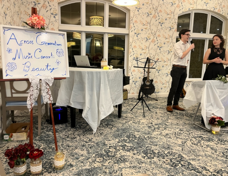 Residents waiting for the concert to start at McGurk House, Fall 2022